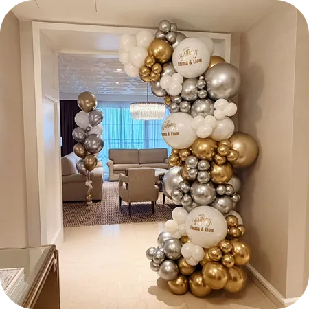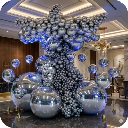 Custom balloon installations delivered and set up directly at your hotel suite, venue, or event space.